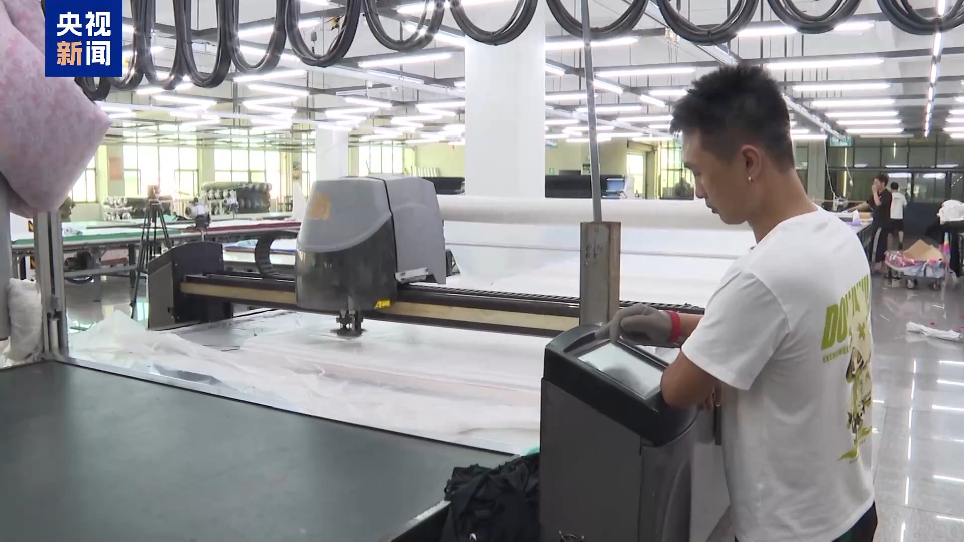 在一家纺织面料加工工厂里,一排排防晒专用纱线正源源不断地被送上织布机,经过密织、高温定型等流程,被加工成具备高倍防晒性能的科技面料。据企业负责的人介绍,他们从2019年开始,对全产线进行了数字智能化升级。